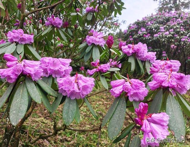 山路缓缓爬升,海拔缓缓升高到1500米操纵,粗略走了3公里操纵,路边驱动出现稀罕的杜鹃花,粉的、紫的,一朵朵缀在枝端,有的金色年华,有的大力盛放,娇艳欲滴,搭配着翠绿的枝桠,格外顺眼。越往山上走,杜鹃花越多,从稀罕散播变成了成片的花海,尤其是走到中国杜鹃园隔壁,这里的杜鹃开得最密集,海拔粗略1800米,粉紫渐变的花朵越来越多,远远眺去,像是一派粉色的云霞,山风吹过,花朵涌动,香气扑鼻。