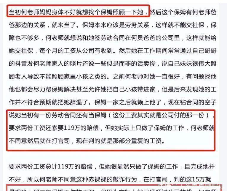 如果说孤苦孤身一人是他我方挑的“付出”,那保姆讼事的抗争就像是弄垮他的“那根压垮骆驼的稻草”。2019年,母亲患阿尔茨海默症,他忙到抽不开身,通过熟东谈主找来保姆苏宇,掏心掏肺地对待:高薪、包吃包住,还帮她承担母亲的医疗用度,以致让她挂名我方父亲公司的法东谈主,即是为了帮她给孩子办理社保。