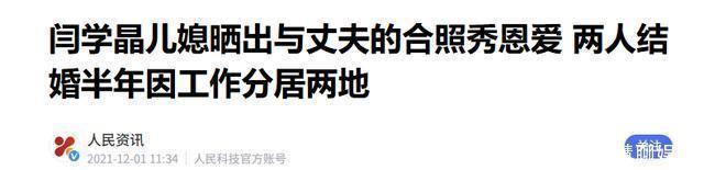 东谈主民资讯2021-12-01闫学晶儿媳晒出与丈夫的合照秀恩爱 两东谈主成婚半年因责任分居两地