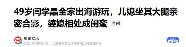 猫眼文娱2021-10-06 22:5649岁闫学晶全家出海游玩,儿媳坐其大腿亲密合影,婆媳相处成闺蜜