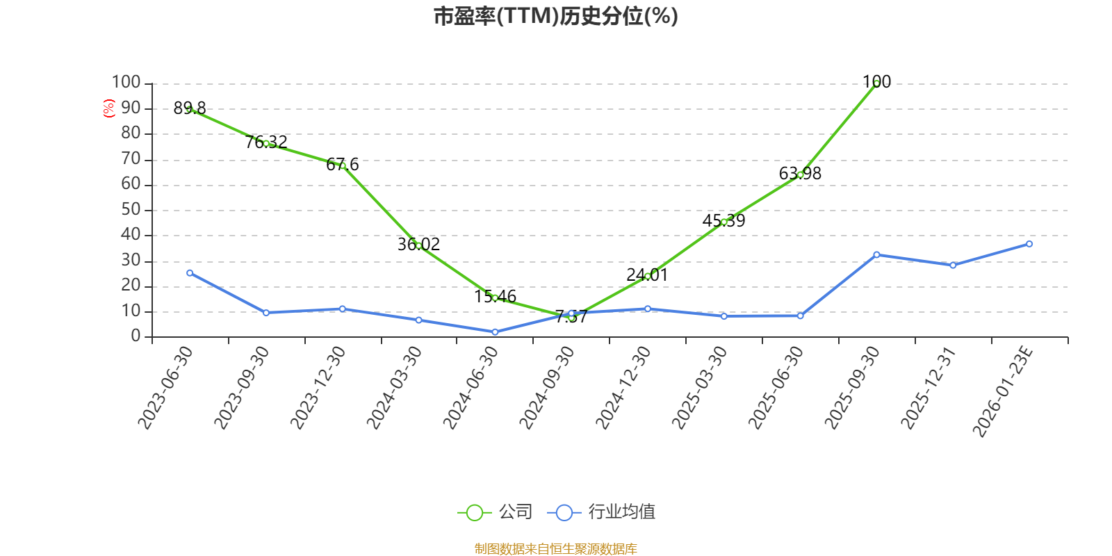 以本次裸露功绩预报均值筹划,公司频年市盈率(TTM)图如下所示: